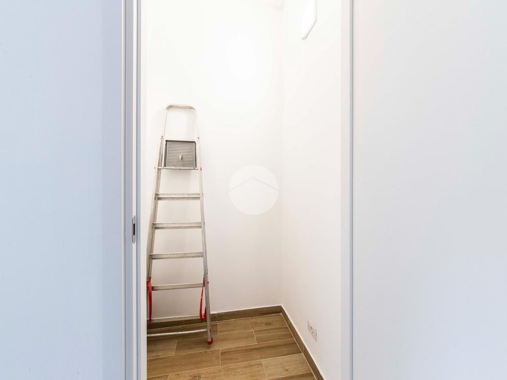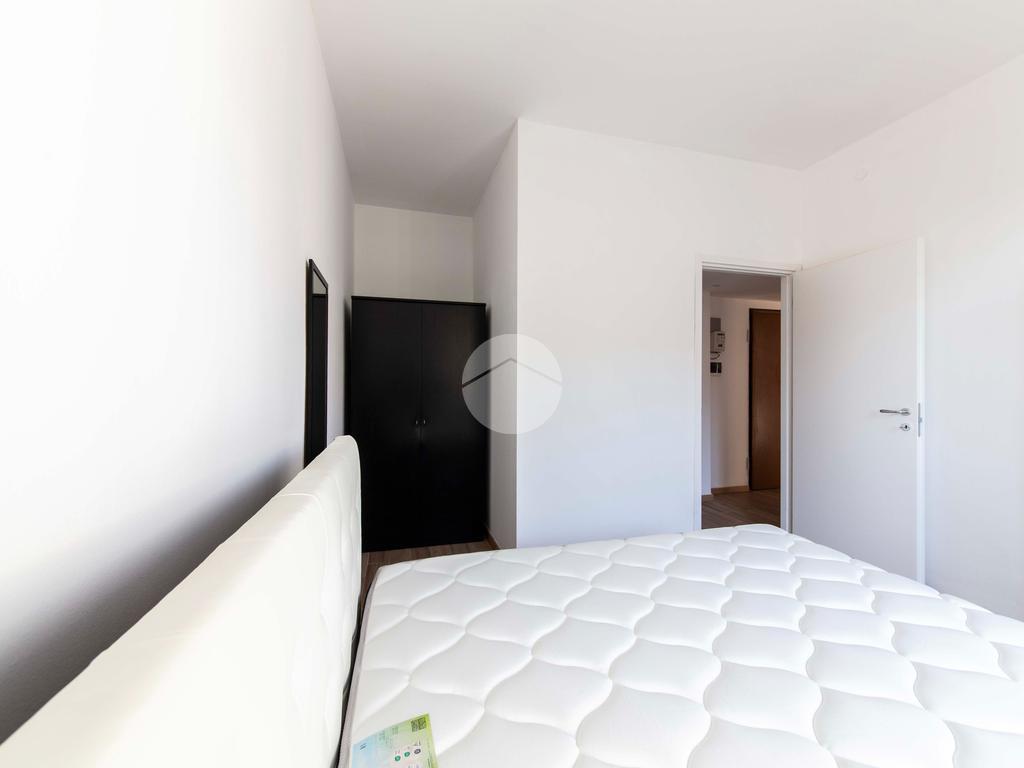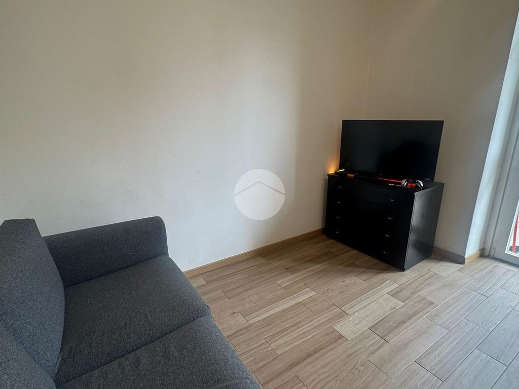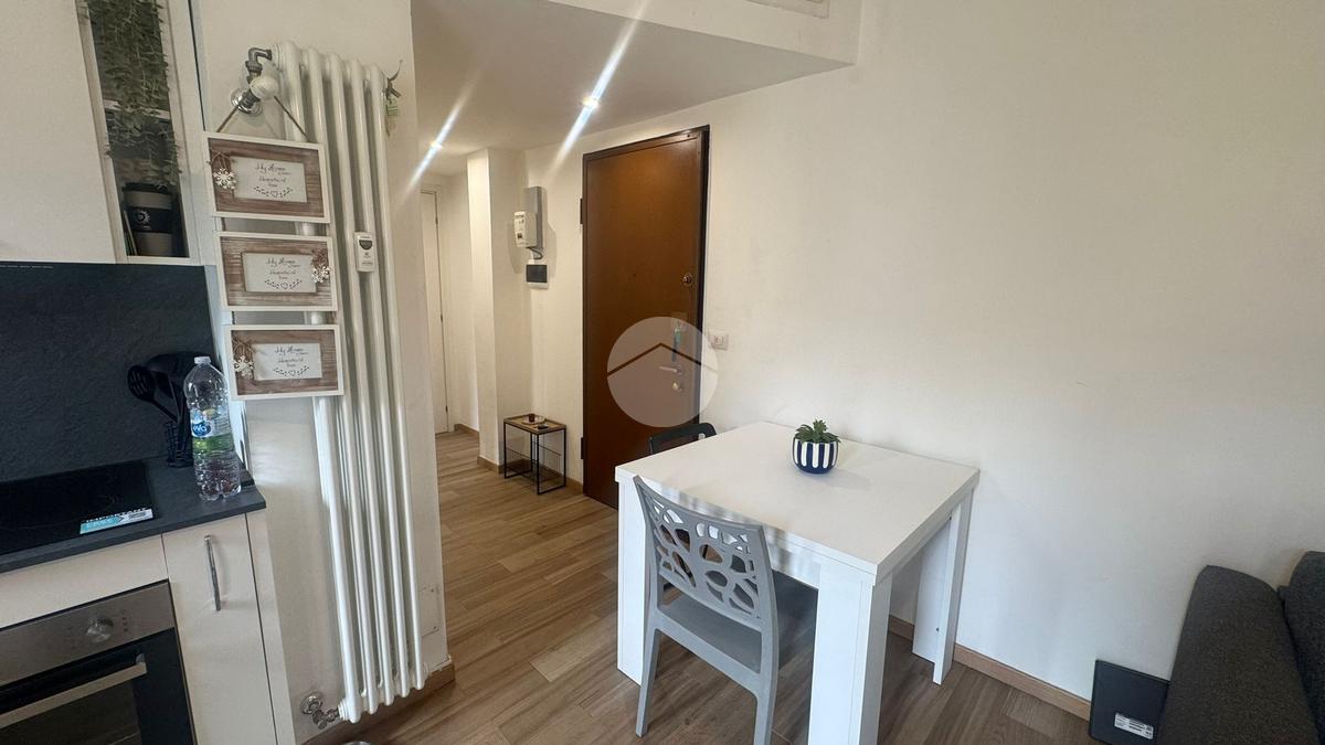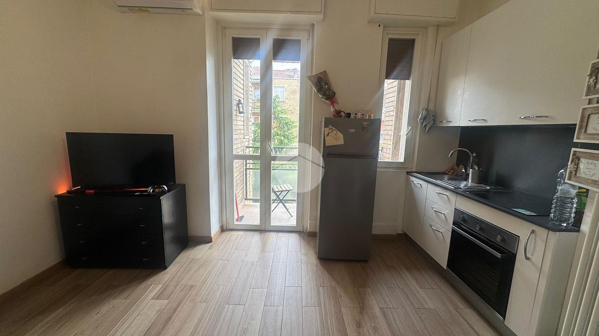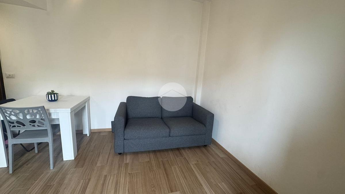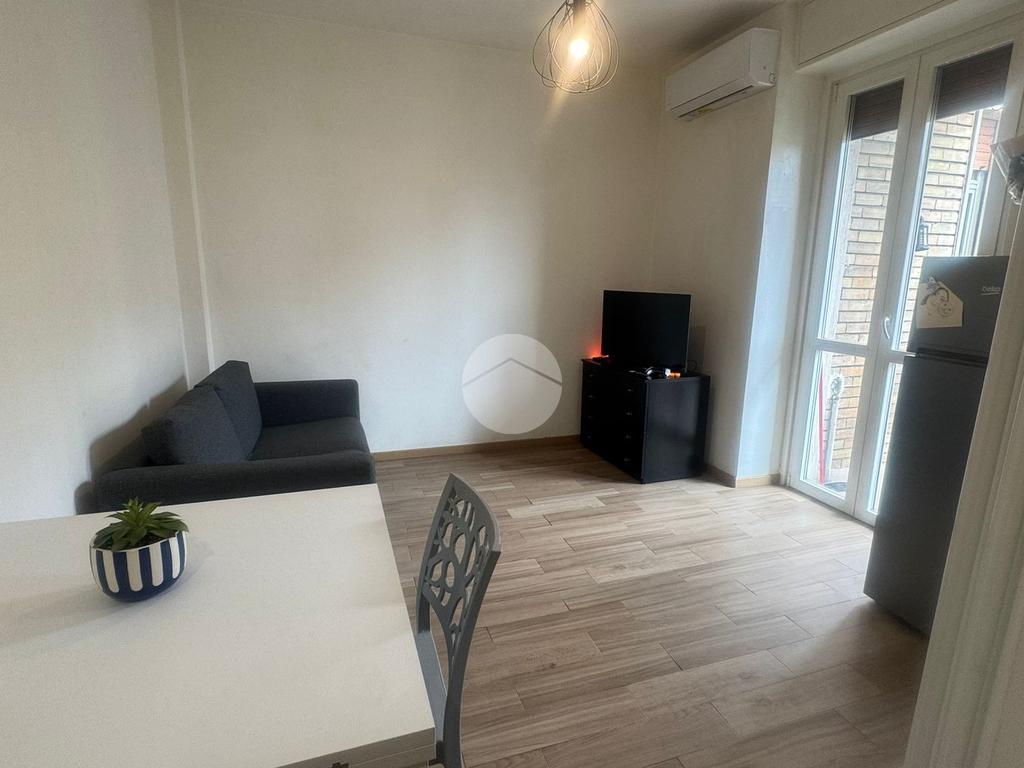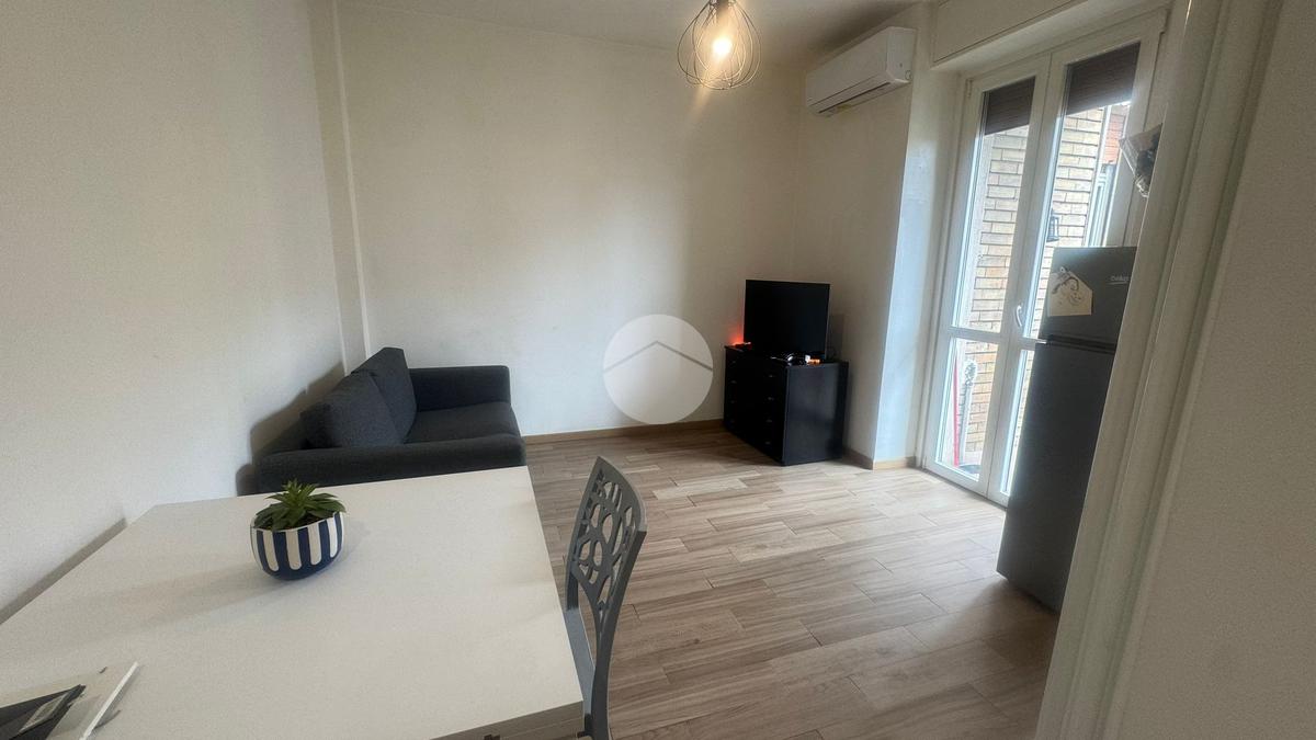 Ingresso che si apre sul soggiorno con cucina a vista (piano ad induzione, forno, frigorifero, cappa, tavolo, sedie, divano 3 posti) con aria condizionata ed un balcone. Un disimpegno separa la zona giorno dalla zona notte con ampia camera matrimoniale (letto contenitore queen size 160X190, armadi ed aria condizionata). Il bagno finestrato, si compone di un box doccia, WC, bidet, lavatrice. A completare l'ambiente, un ripostiglio nel disimpegno.