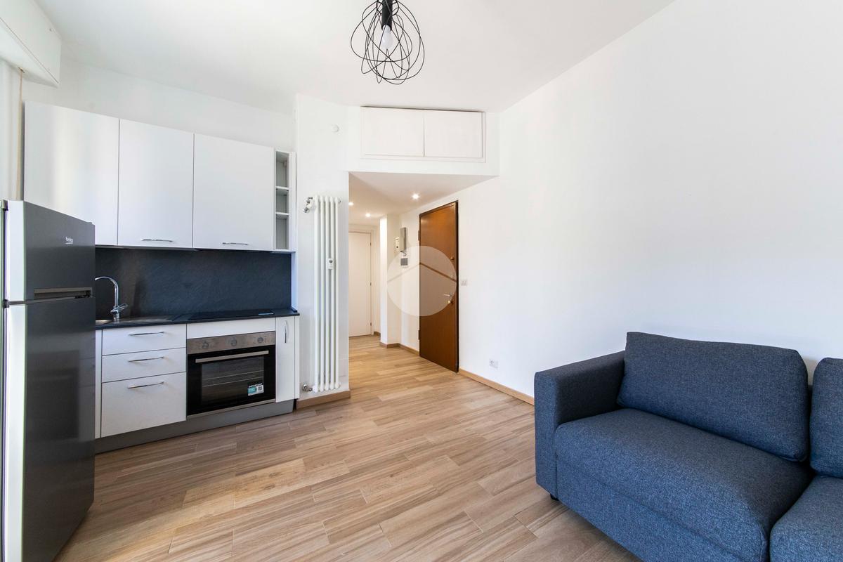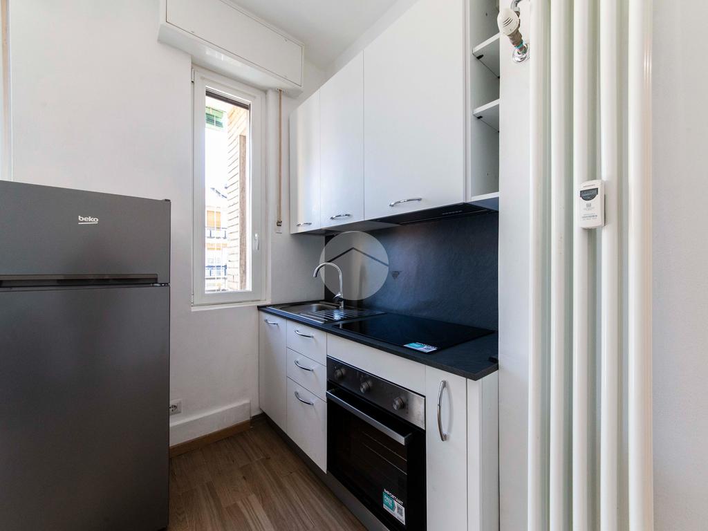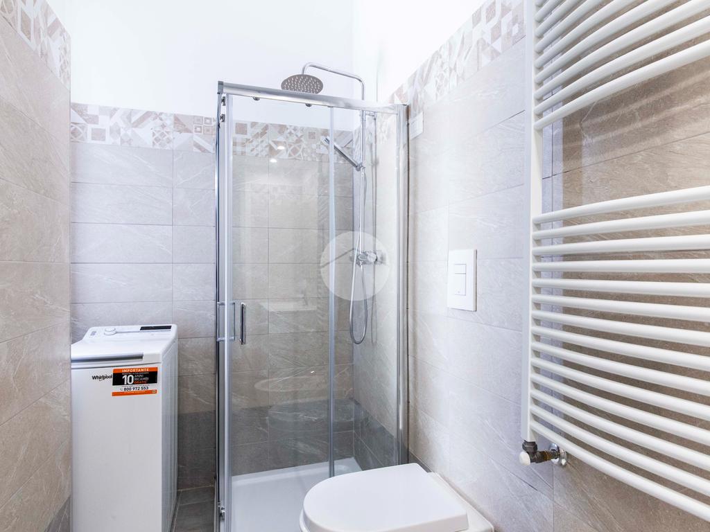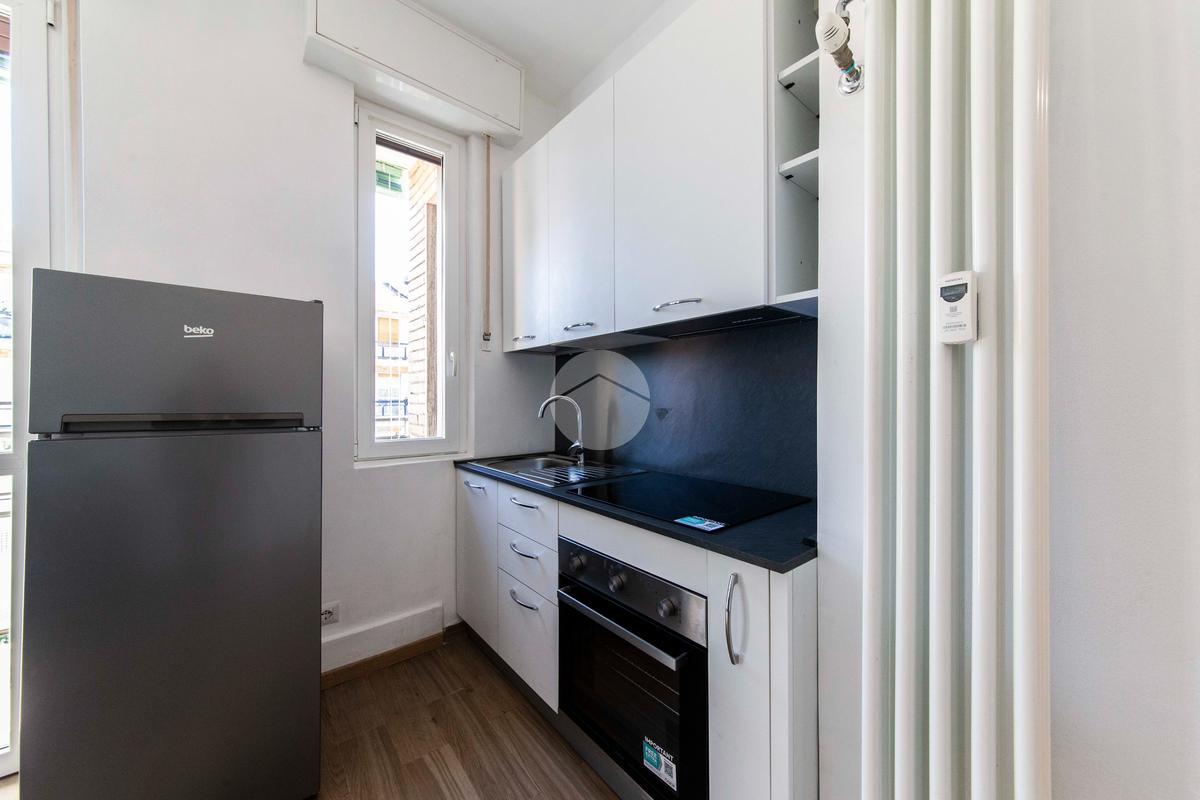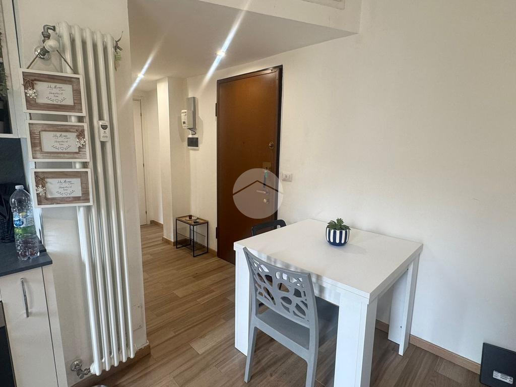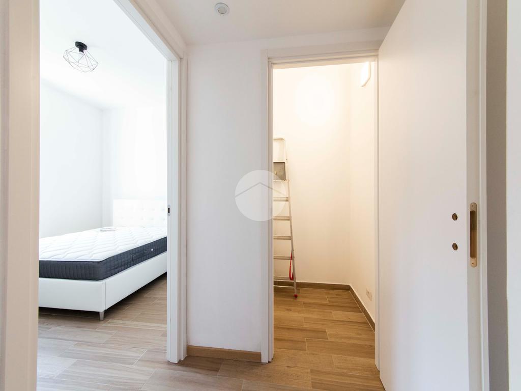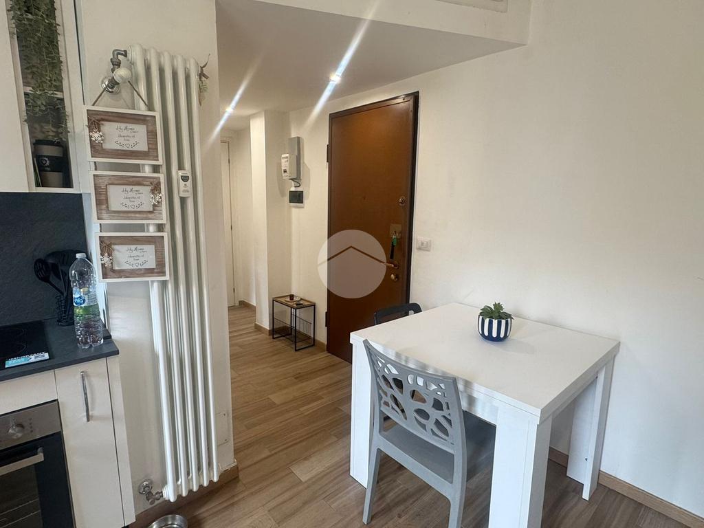 Ingresso che si apre sul soggiorno con cucina a vista (piano ad induzione, forno, frigorifero, cappa, tavolo, sedie, divano 3 posti) con aria condizionata ed un balcone. Un disimpegno separa la zona giorno dalla zona notte con ampia camera matrimoniale (letto contenitore queen size 160X190, armadi ed aria condizionata). Il bagno finestrato, si compone di un box doccia, WC, bidet, lavatrice. A completare l'ambiente, un ripostiglio nel disimpegno.