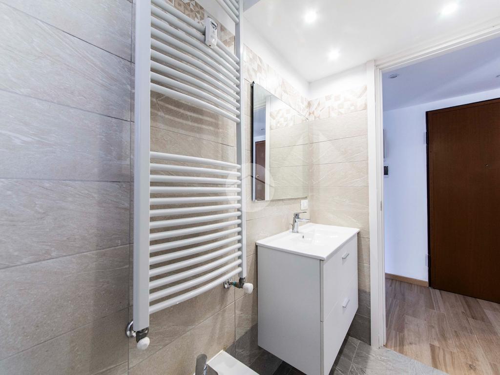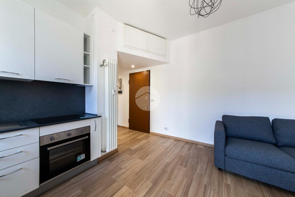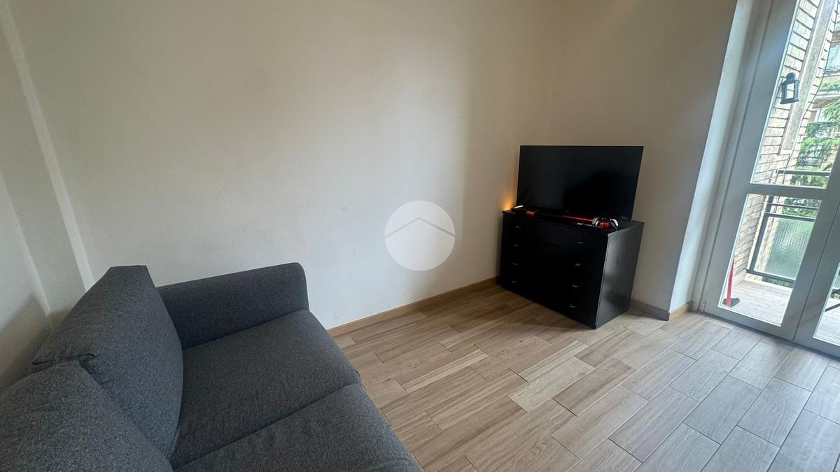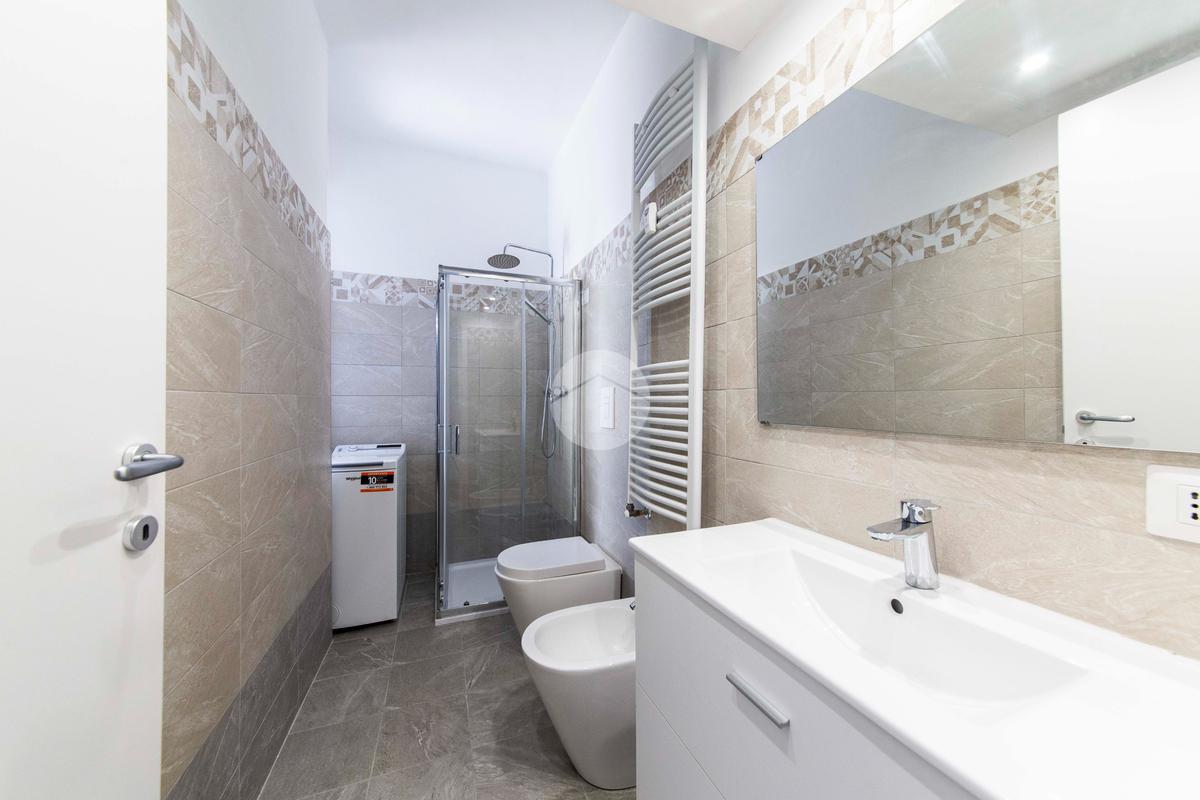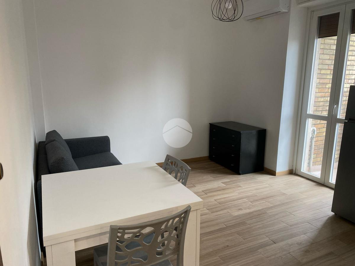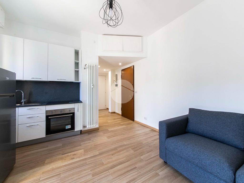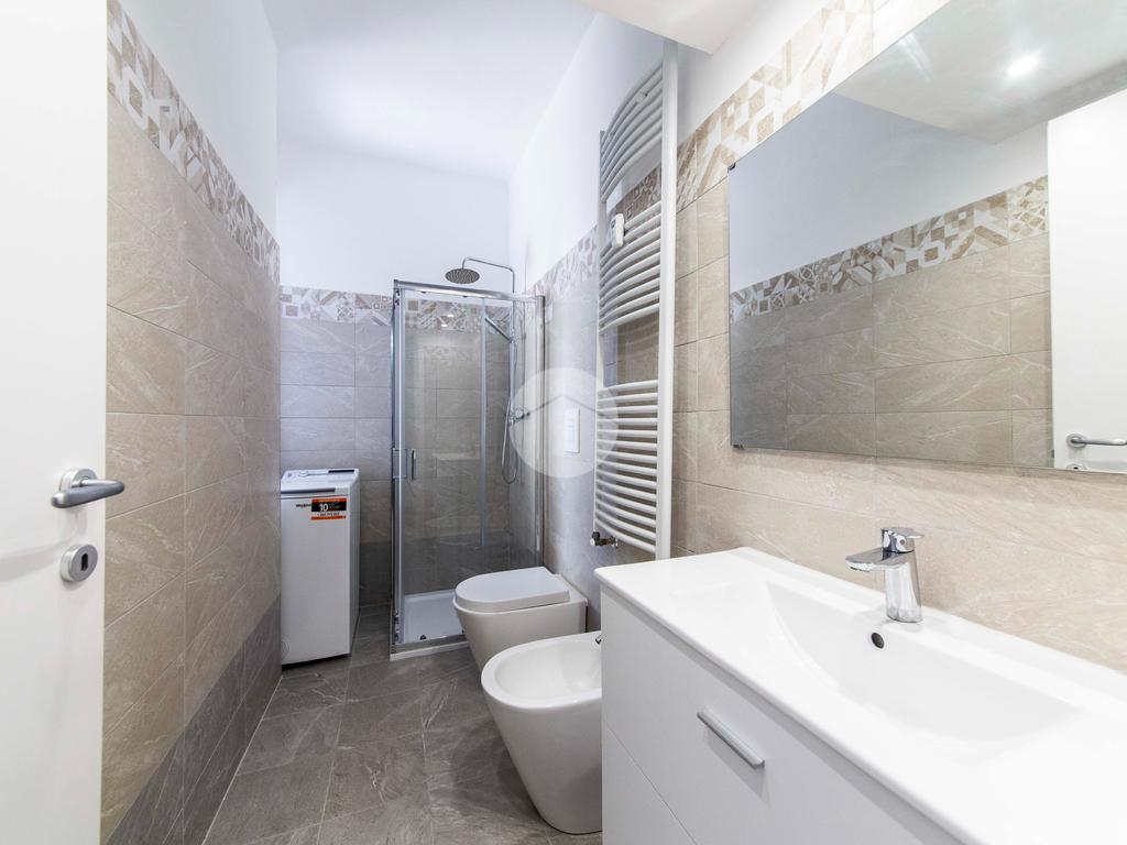 Ingresso che si apre sul soggiorno con cucina a vista (piano ad induzione, forno, frigorifero, cappa, tavolo, sedie, divano 3 posti) con aria condizionata ed un balcone. Un disimpegno separa la zona giorno dalla zona notte con ampia camera matrimoniale (letto contenitore queen size 160X190, armadi ed aria condizionata). Il bagno finestrato, si compone di un box doccia, WC, bidet, lavatrice. A completare l'ambiente, un ripostiglio nel disimpegno.