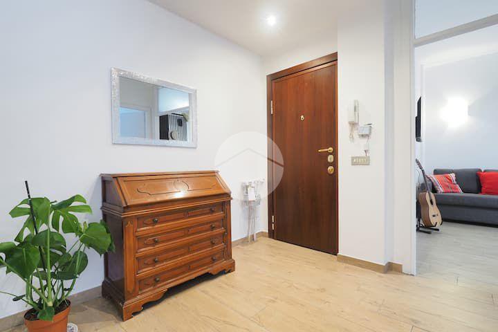 Ingresso in ampio disimpegno nel quale è stata ricavata un’ampia armadiatura a tutta parete comoda come guardaroba aggiuntivo o per organizzare al meglio lo spazio domestico.