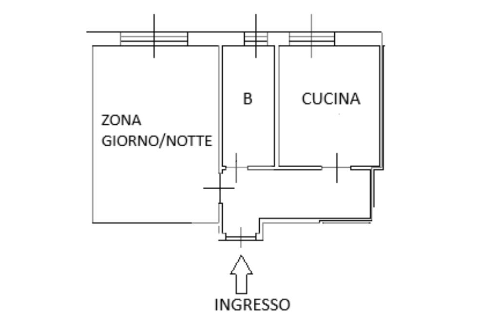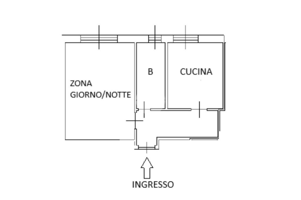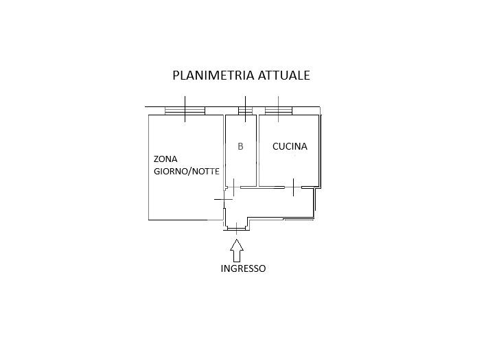 L’appartamento si presenta attualmente con la seguente distribuzione: ingresso in ampio disimpegno che ci conduce direttamente all’ampia zona giorno/notte, ambiente luminoso e versatile. Proseguendo, troviamo il bagno finestrato e infine una cucina abitabile separata.