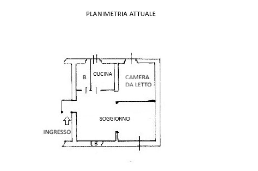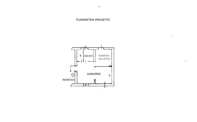 Grazie alla disposizione interna e alla struttura dell’appartamento, è possibile ipotizzare una diversa distribuzione degli ambienti (come da planimetria di progetto), con ingresso in ampia zona giorno con cucina a vista, camera da letto matrimoniale, camera singola e bagno finestrato. Questa soluzione consentirebbe di realizzare un moderno e funzionale trilocale.